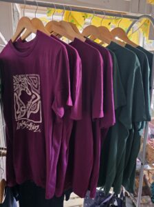 Each organic t-shirt is handprinted with a silk-screen
