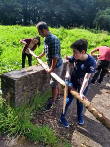 The second picture shows better the construction methods used, if indeed there was such a thing. Indeed, my mentor/helper James didn’t carry a tape or spirit level! No hard hat either!!