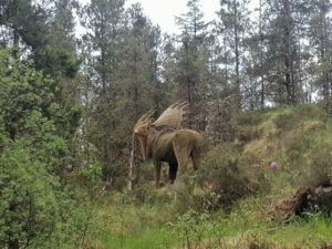 This Golden Eagle was carved to mark a walkway running through tthe Gaeltacht of west Donegal. The wood came from the bog, and tthe eagles have returned since this was carved in 2000.